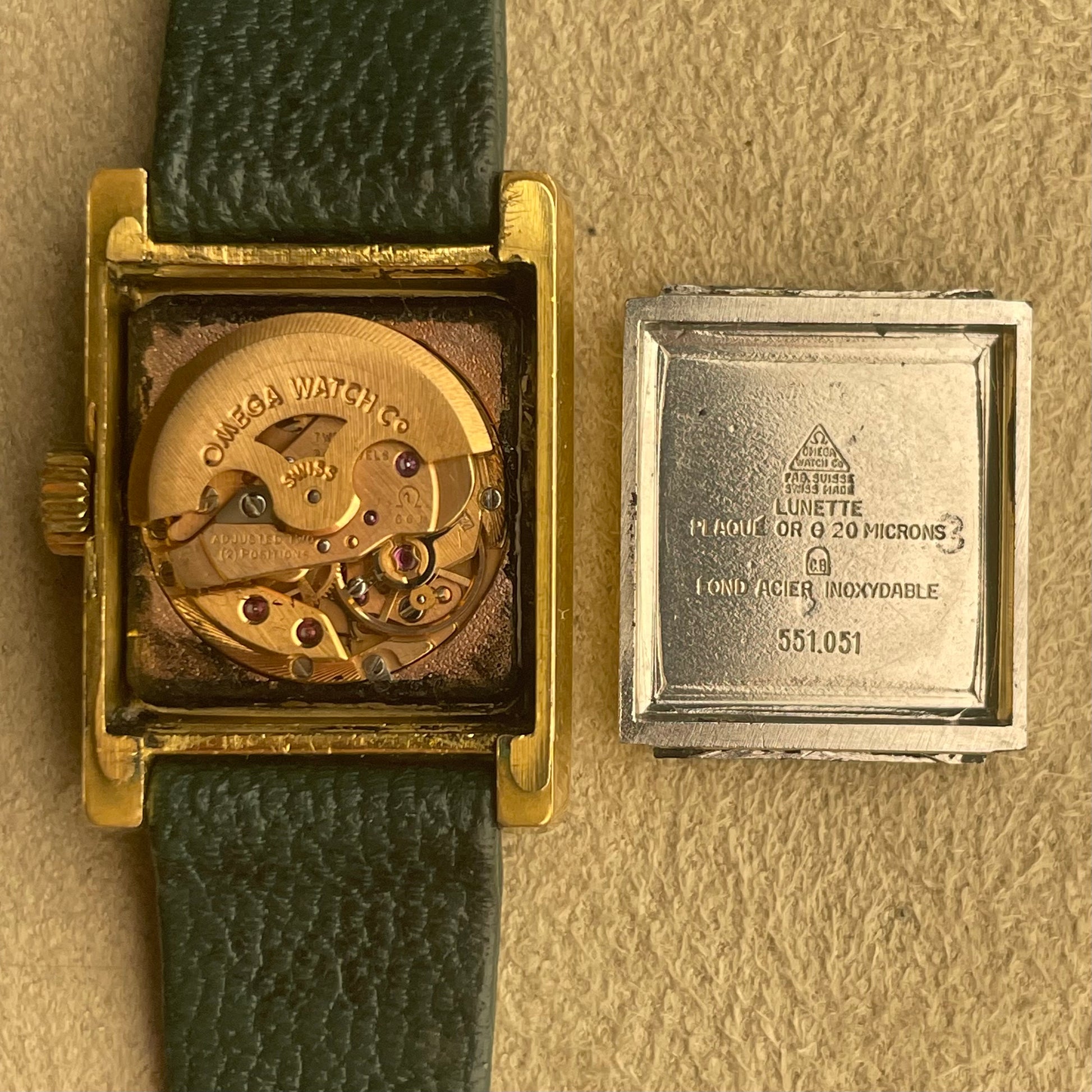 The gold-plated case shows some signs of wear,      All original case with omega signed crown and crystal