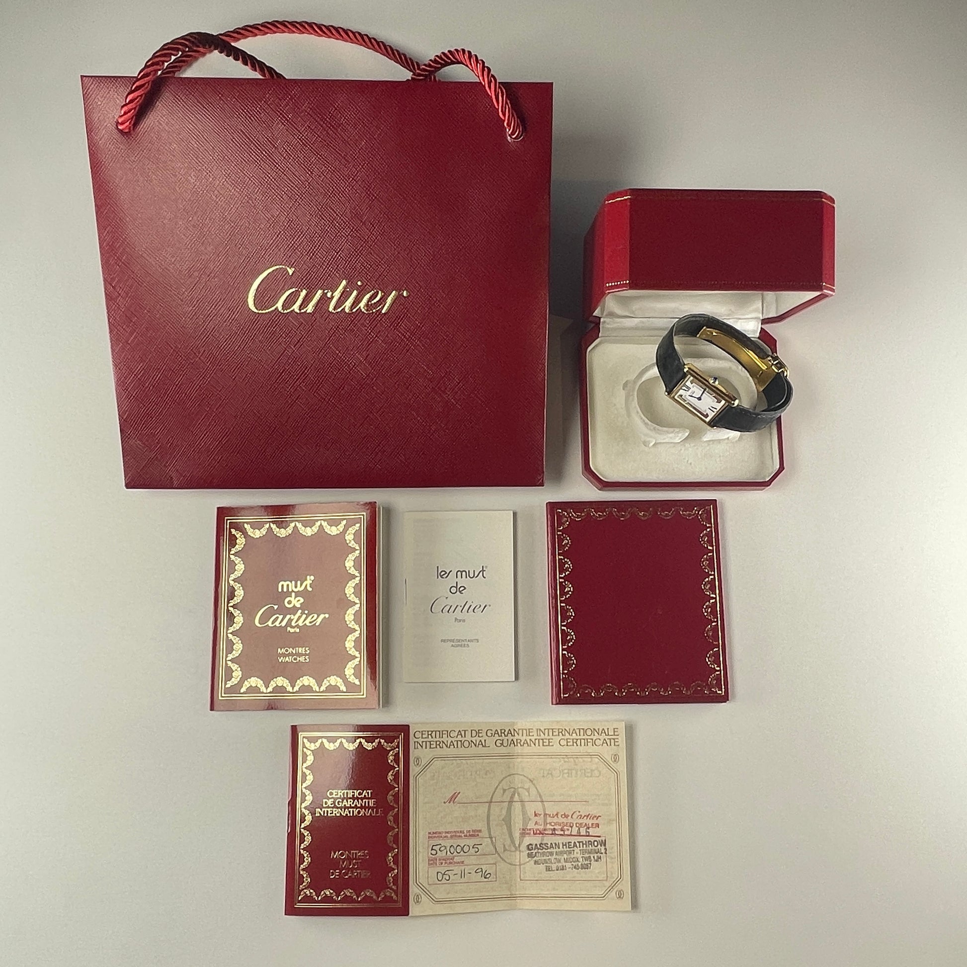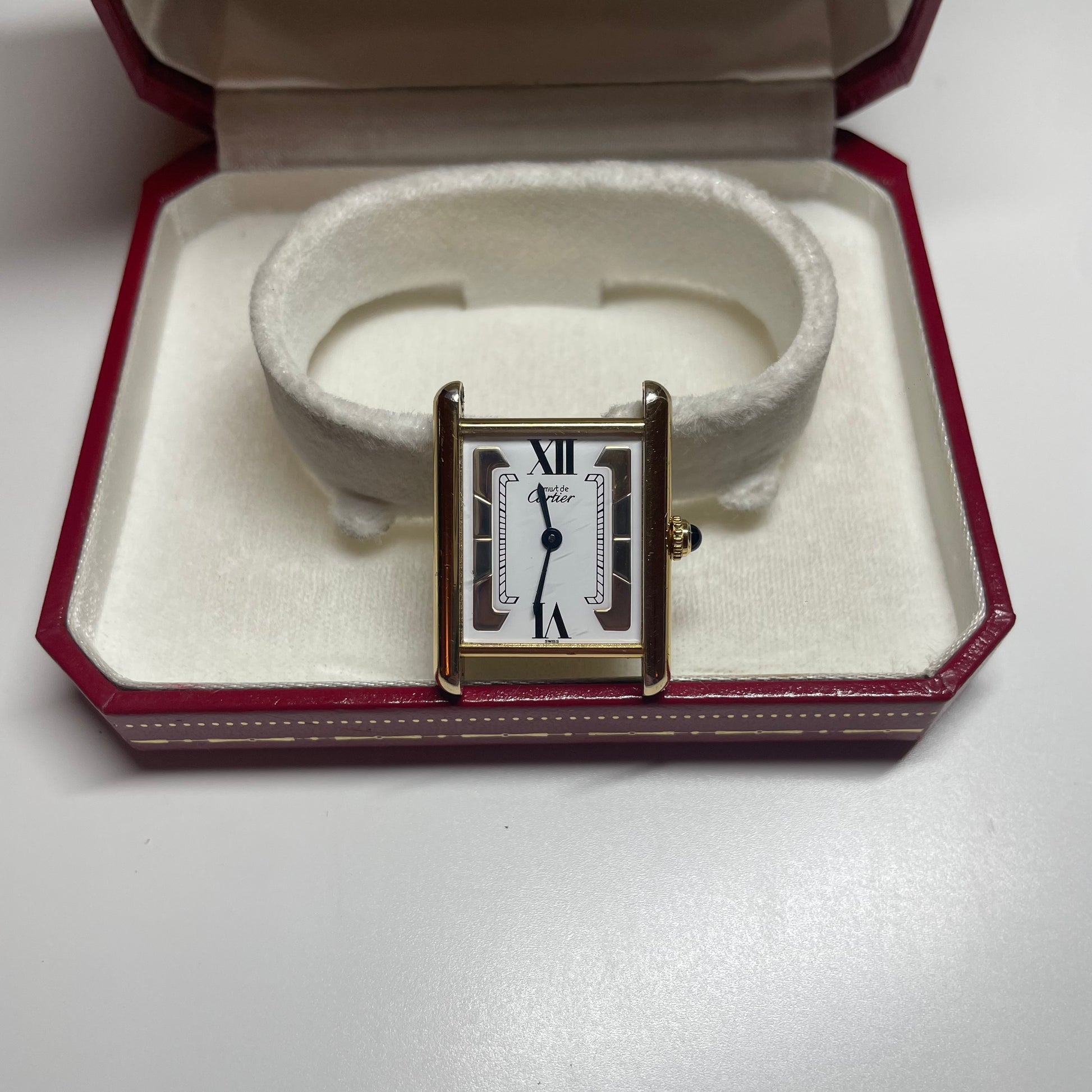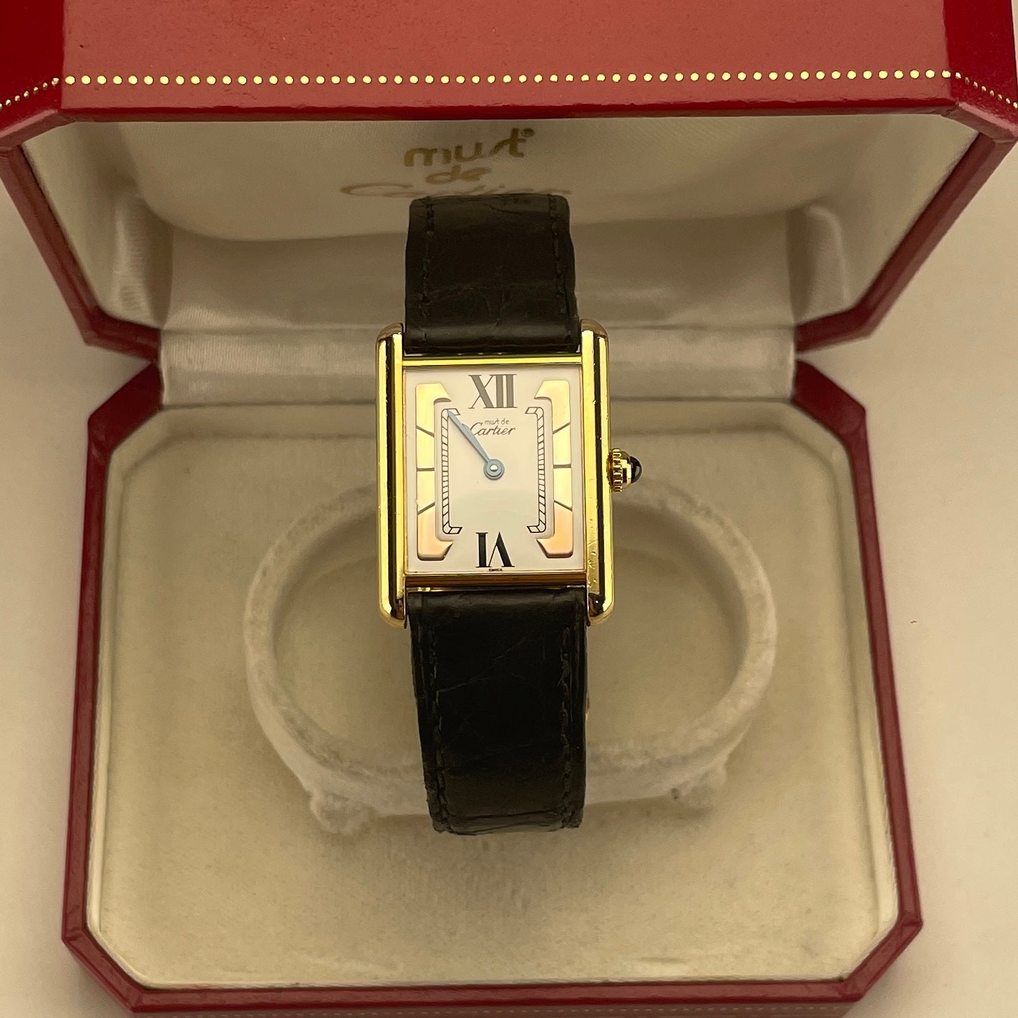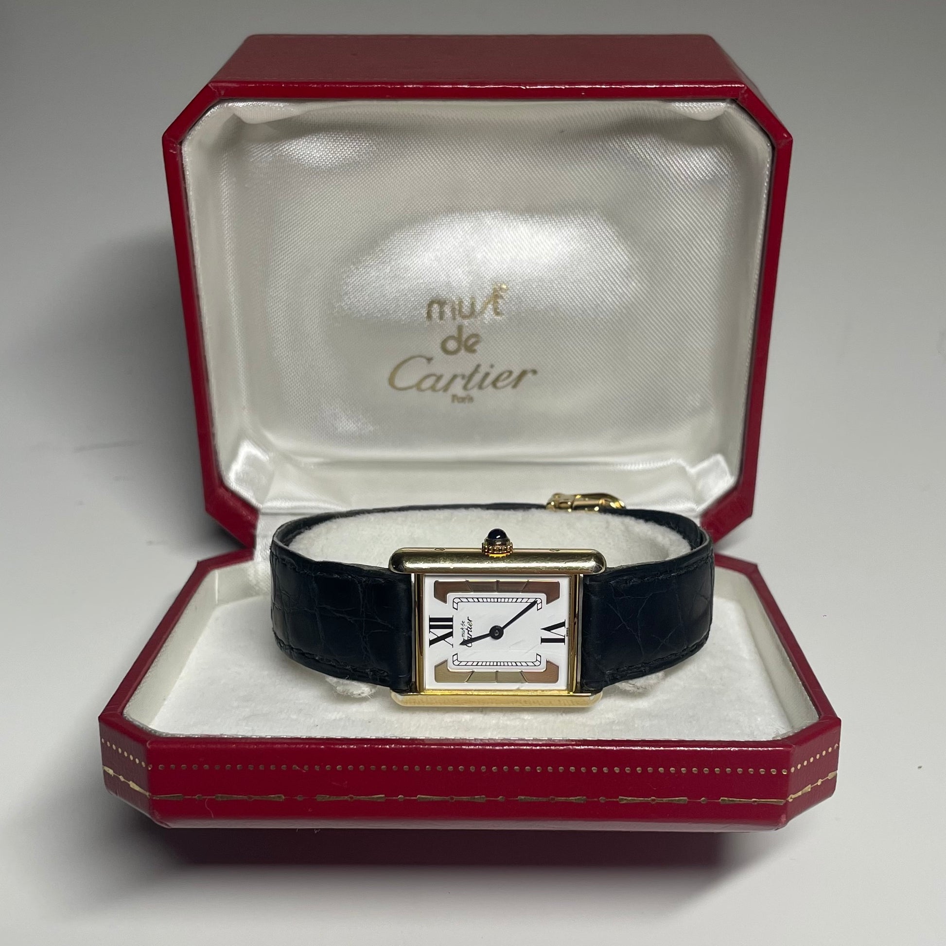 This stunning Cartier Must de Cartier Tank 590005 finished in Vermeil gold plating over silver, in perfect working order. With a beautiful white dial flanked by two tri colour brackets containing white, yellow, and rose gold. Being powered by a quartz movement makes this timepiece as reliable as it is stunning.